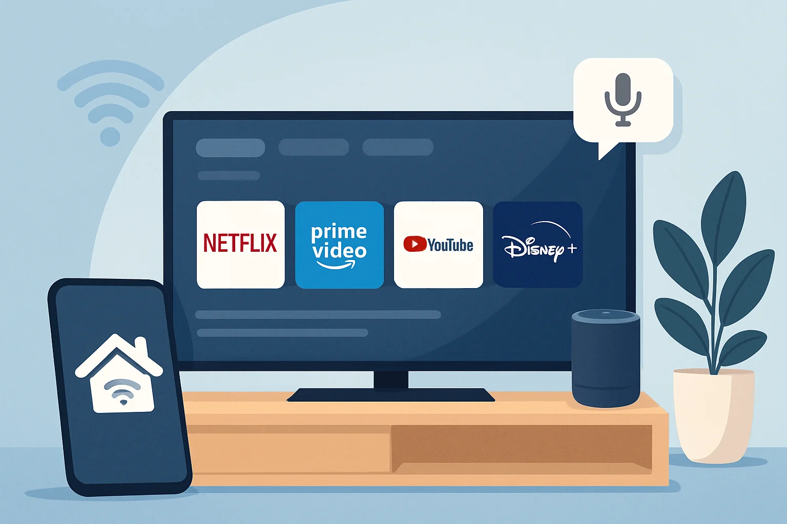 🔸Ein Smart-TV ermöglicht das direkte Streaming von Diensten wie Netflix, Prime Video und vielen anderen über vorinstallierte Apps und eigene Betriebssysteme wie Powered by TiVo, VIDAA, Fire TV, Android. Falls dein Fernseher kein Smart-TV ist, kannst dazu externe Geräte wie Amazon Fire TV Stick oder Apple TV Box verwenden, um diese Funktionen hinzuzufügen.