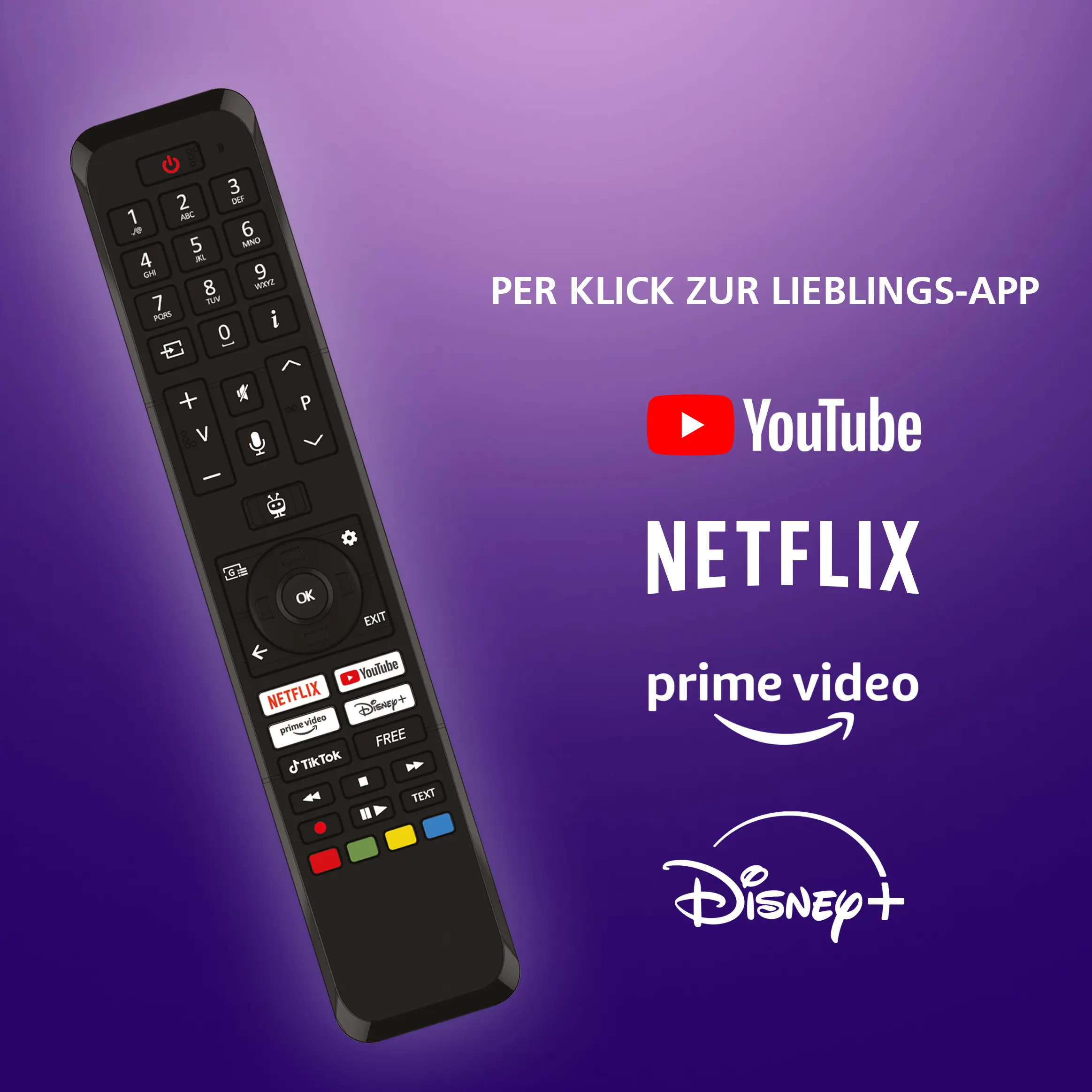| Verfügbare Apps | ARD Mediathek , DAZN , Disney+ , Facebook , JOYN , Netflix , Prime Video , Twitch , YouTube , ZDF Mediathek |