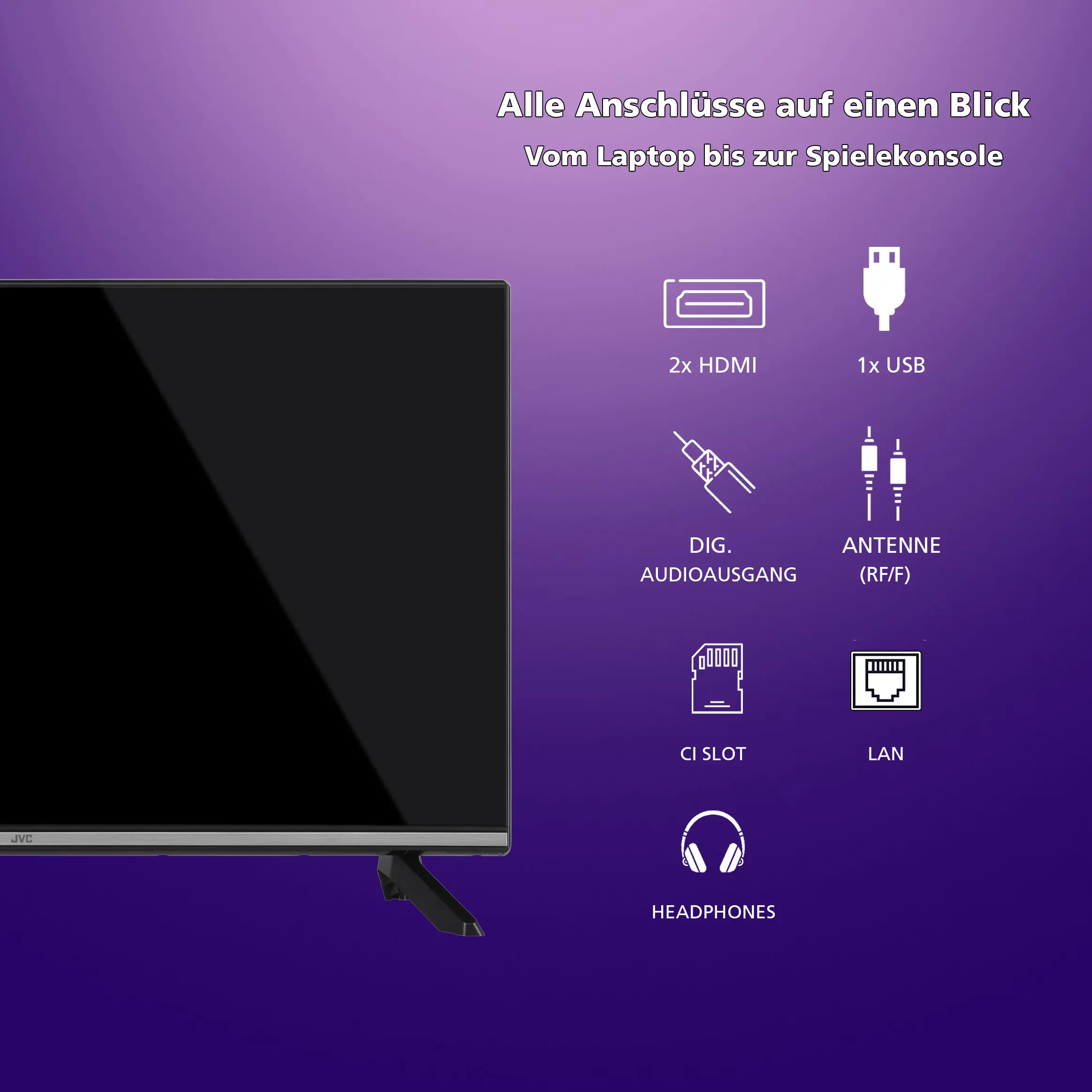 Ob Filme, Serien oder klassisches Fernsehen – der JVC LT-32VH7555 bietet dir ein vielseitiges Entertainment-Erlebnis mit moderner Technik und benutzerfreundlicher Smart TV Plattform.