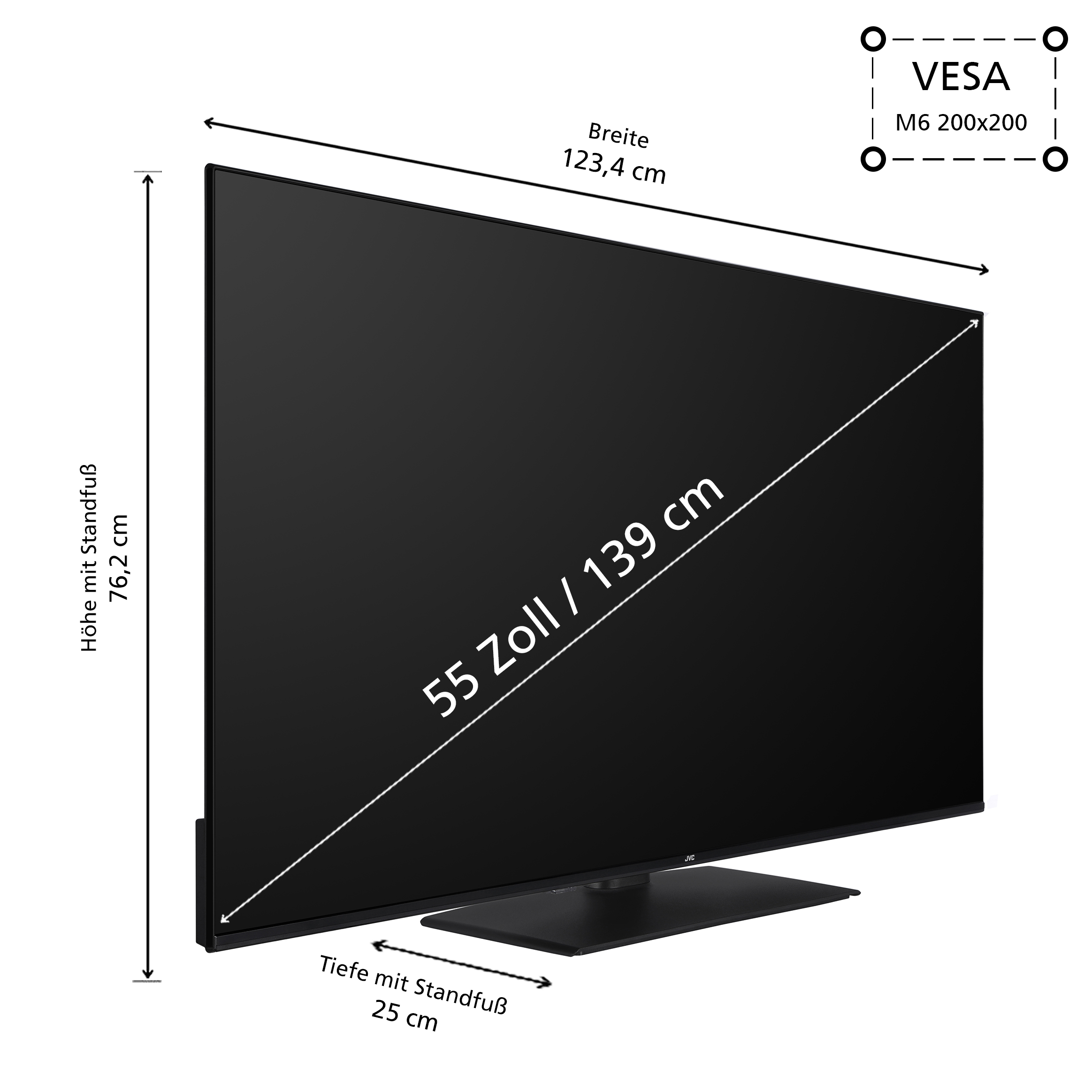 Der JVC LT-50VU3455 kombiniert stilvolles Design mit smarter Technik für erstklassige Unterhaltung bei dir zu Hause. Mit einer Bildschirmdiagonale von 126 cm (50 Zoll) und brillanter 4K UHD-Auflösung erlebst du gestochen scharfe Bilder in beeindruckender Farbvielfalt.