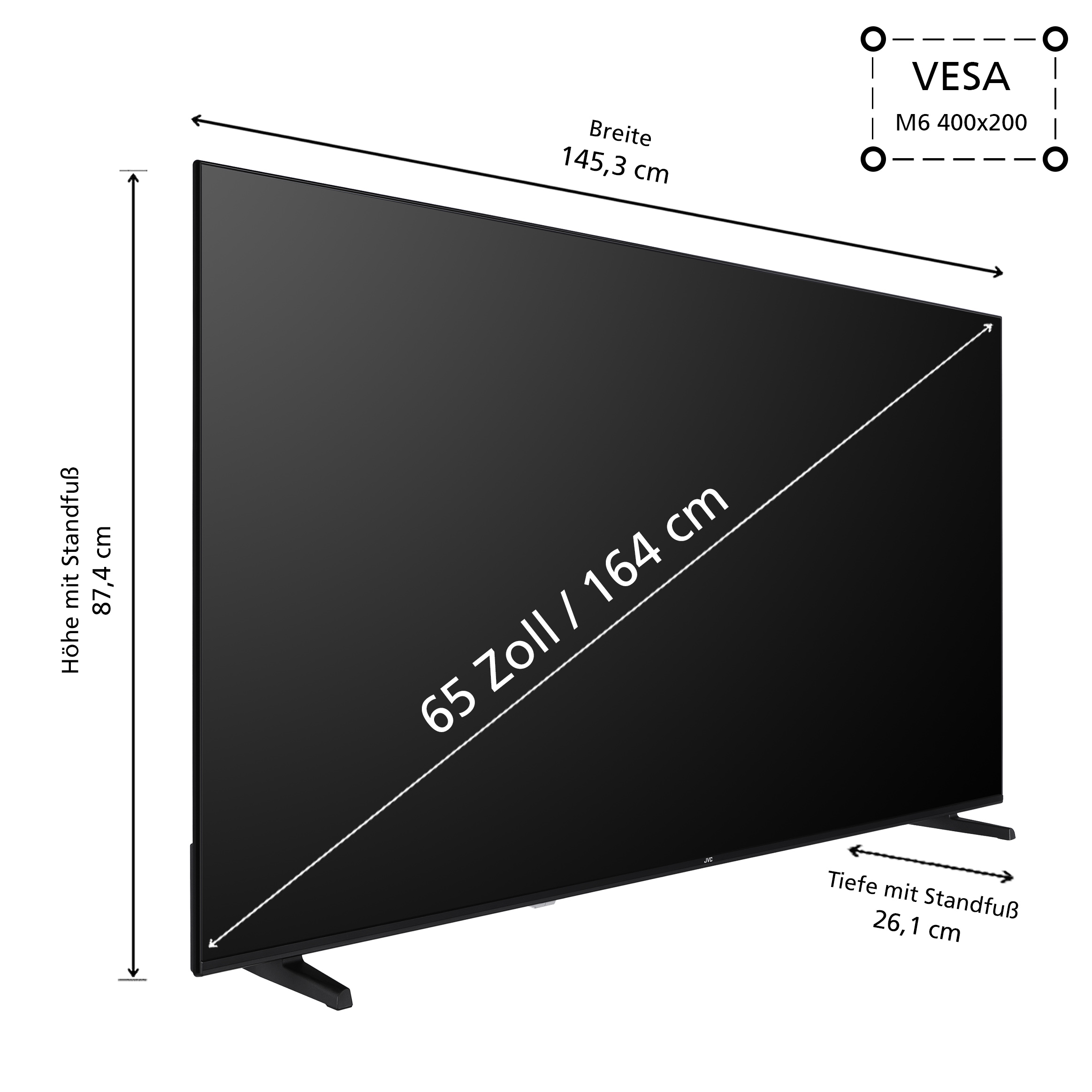 Im stilvollen Design vereint der JVC LT-65VDQ3455 alles, was modernes Fernsehen ausmacht. Auf einer großzügigen Bildschirmdiagonale von 164 cm (65 Zoll) erlebst du gestochen scharfe Bilder in 4K UHD Auflösung, unterstützt durch modernste Bildtechnologien.