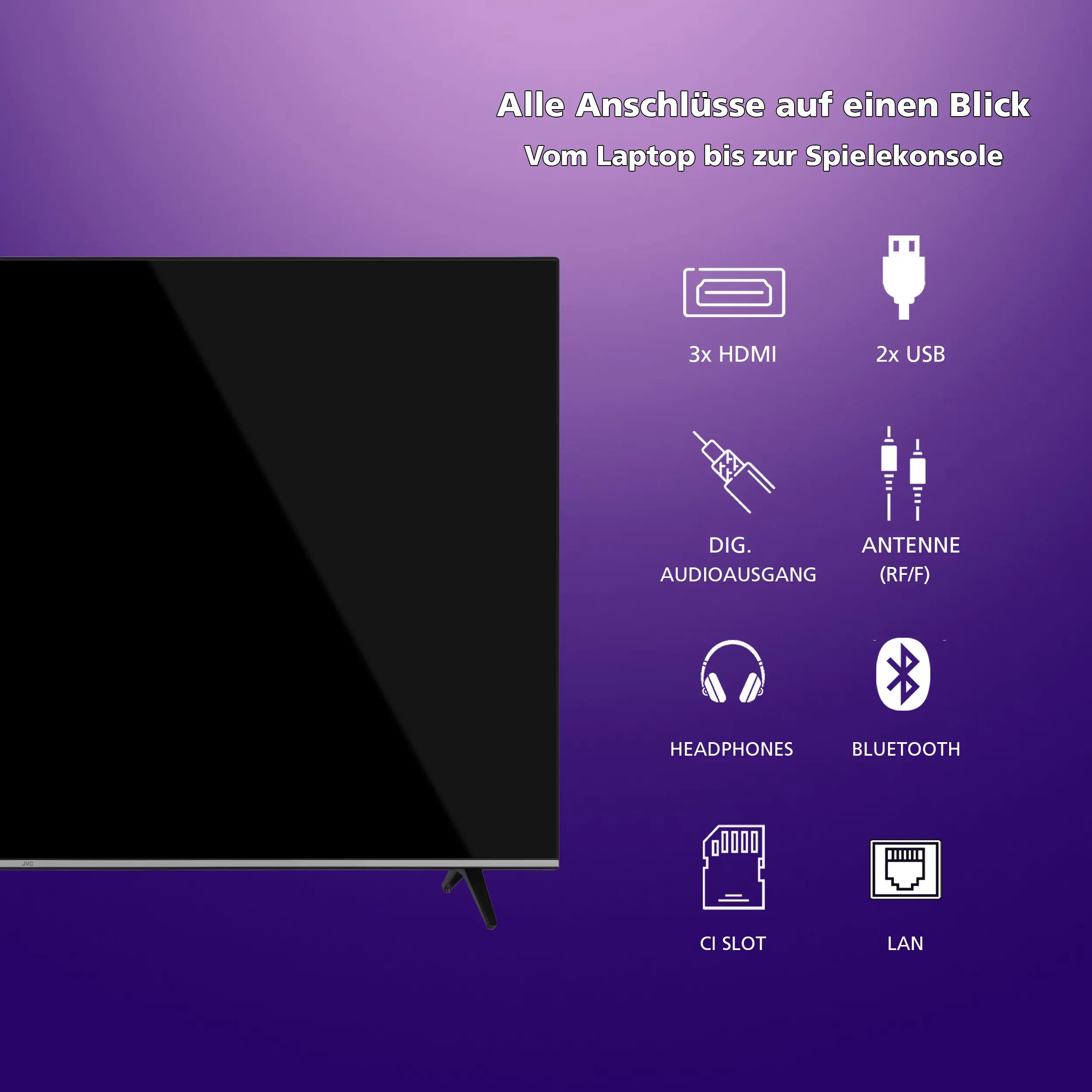 Mit dem JVC LT-65VU7555 holst du dir echtes Kinofeeling ins Wohnzimmer – gestochen scharf, farbintensiv und smart vernetzt. Ideal für alle, die ein erstklassiges Fernseherlebnis mit maximaler Flexibilität suchen.