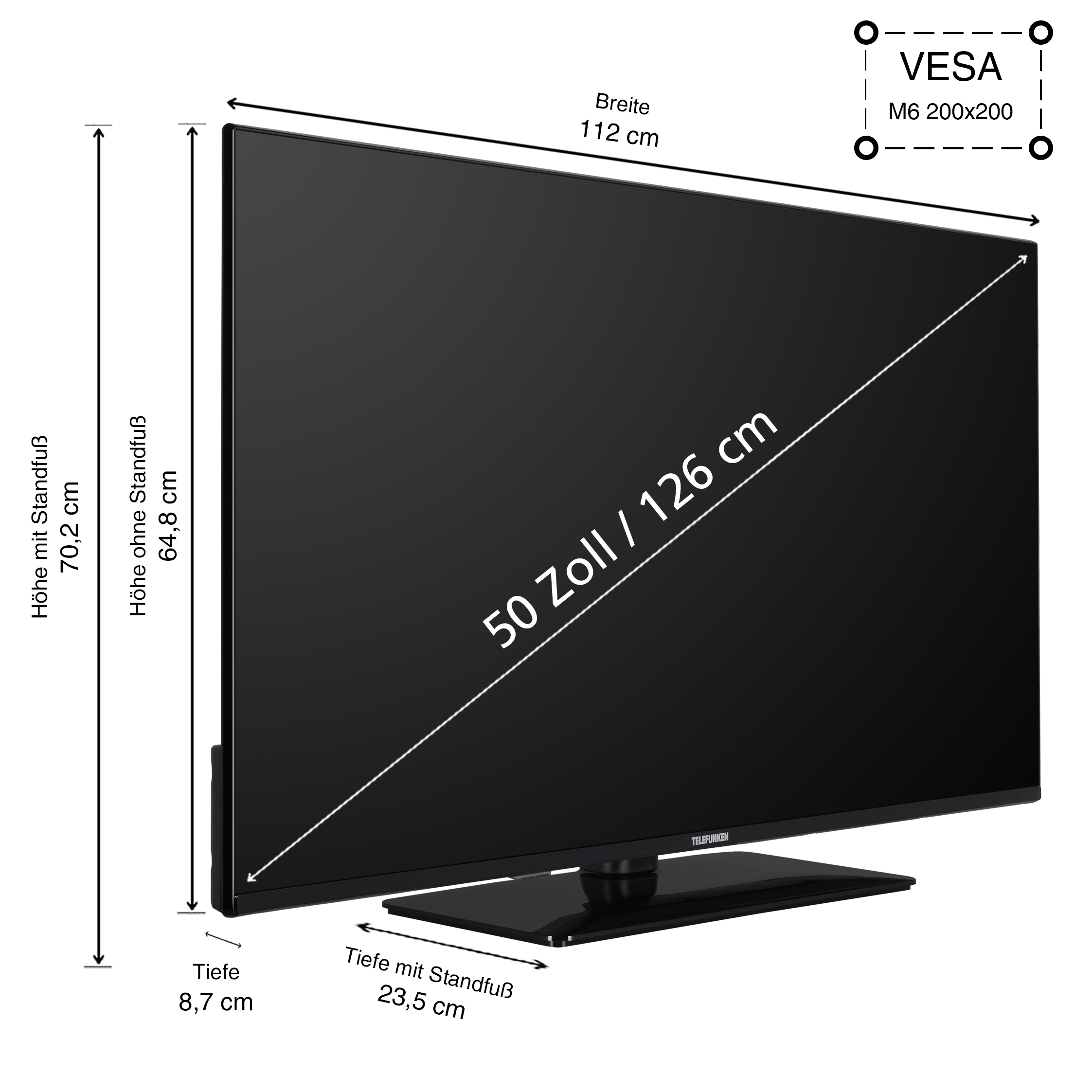 Mit dem Telefunken D50U750X2CWI holst du dir modernste Smart-TV-Technologie, ein brillantes 4K-Bild und viele Anschlussmöglichkeiten ins Wohnzimmer – individuell, leistungsstark und zukunftsfähig.