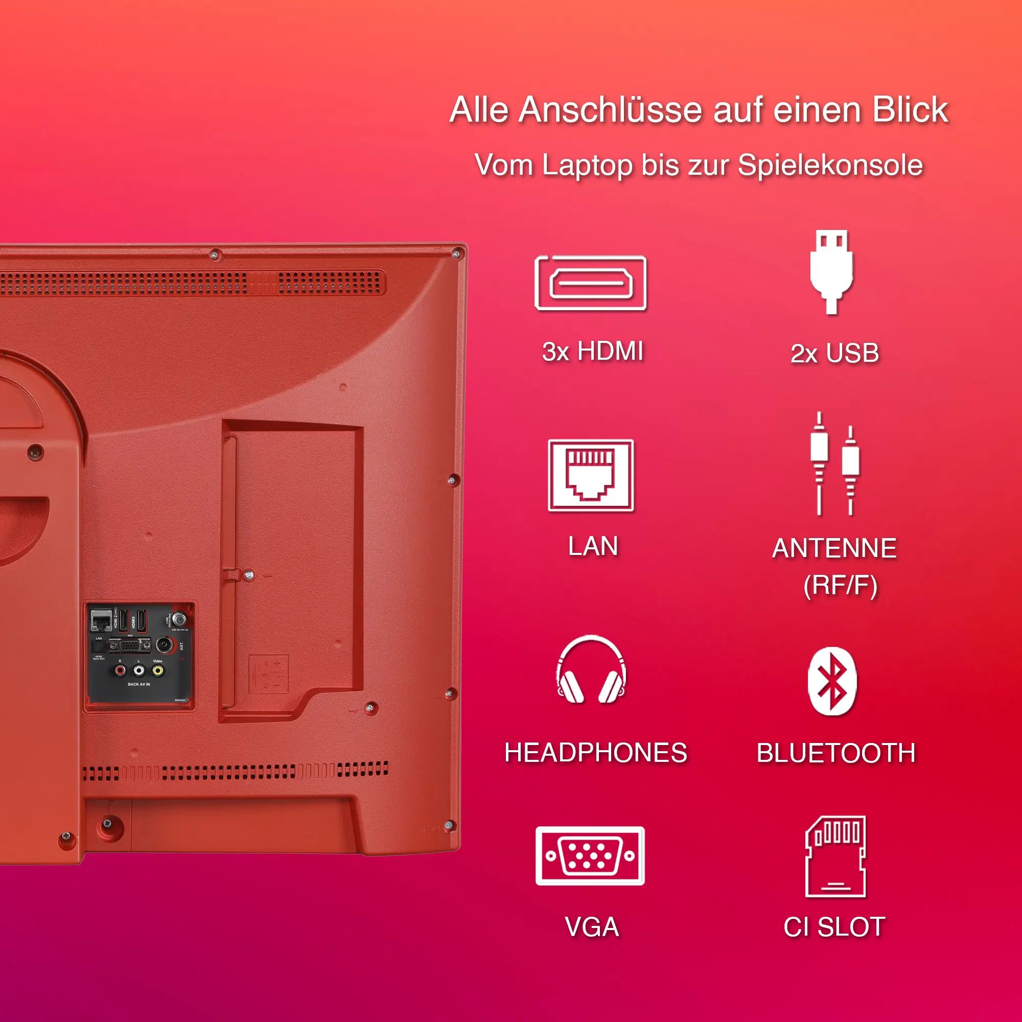 Das auf eine Bildschirmdiagonale von 80 cm (32 Zoll) dargestellte Bild überzeugt mit HD-ready Auflösung und moderner LED-Technologie. Erlebe gestochen scharfe Bilder mit natürlicher Farbgebung und starker Helligkeit – egal ob drinnen oder draußen.