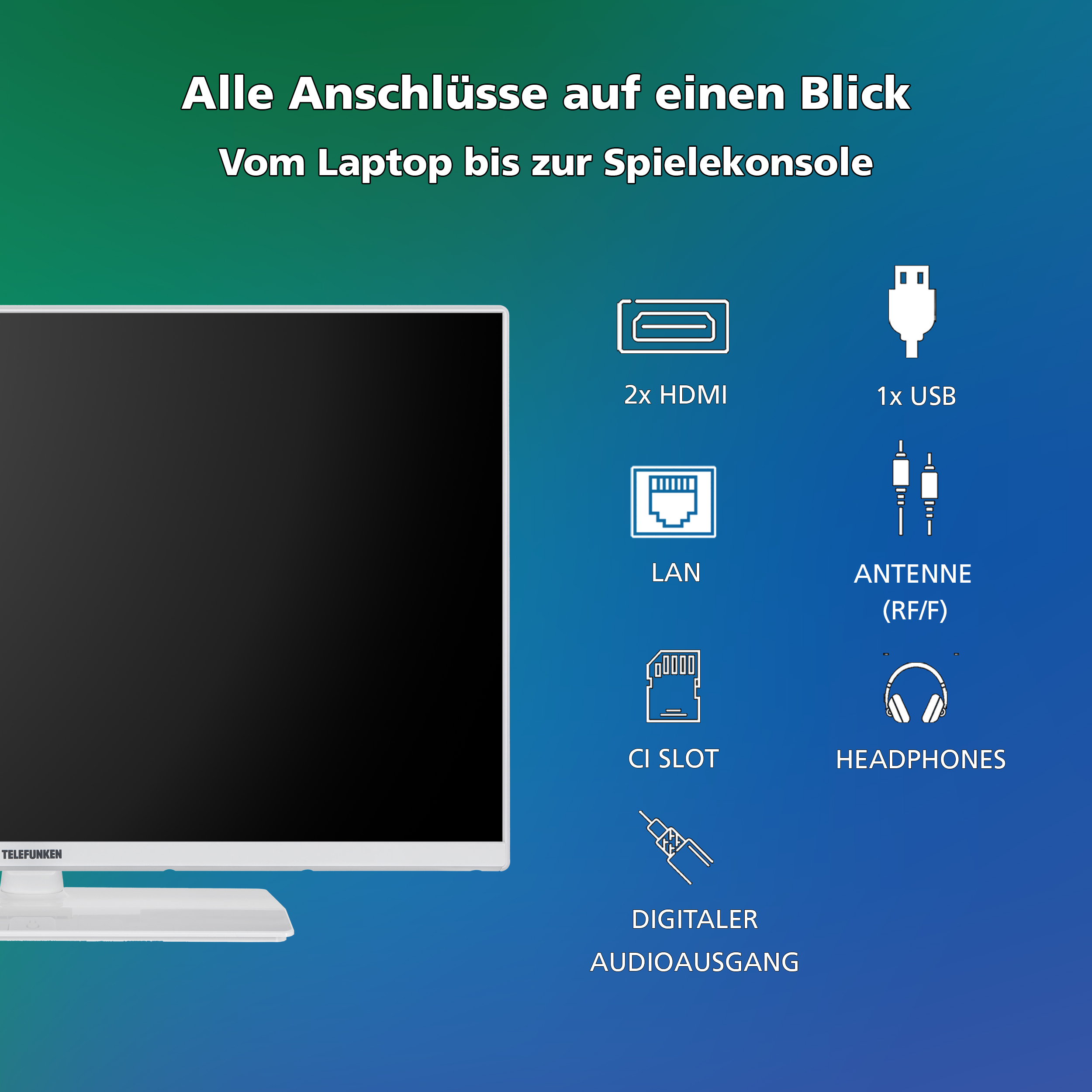 - Anschlüsse: 2x HDMI (CEC + ARC), 1x USB, CI+