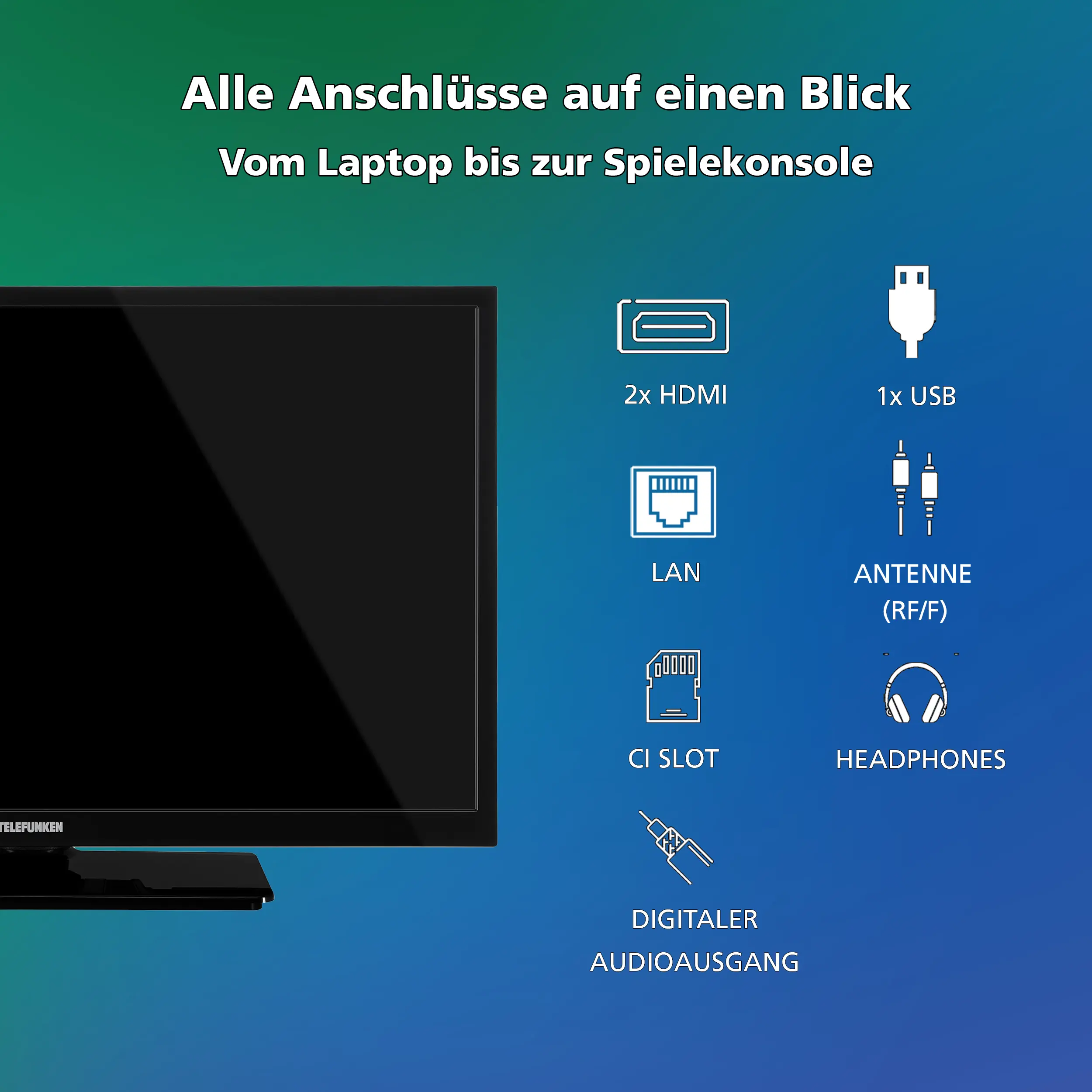 Der Telefunken XH24VP550M vereint kompaktes Design, smarte Funktionen und moderne Bildtechnologie – ideal für kleinere Räume mit großem Entertainment-Anspruch.