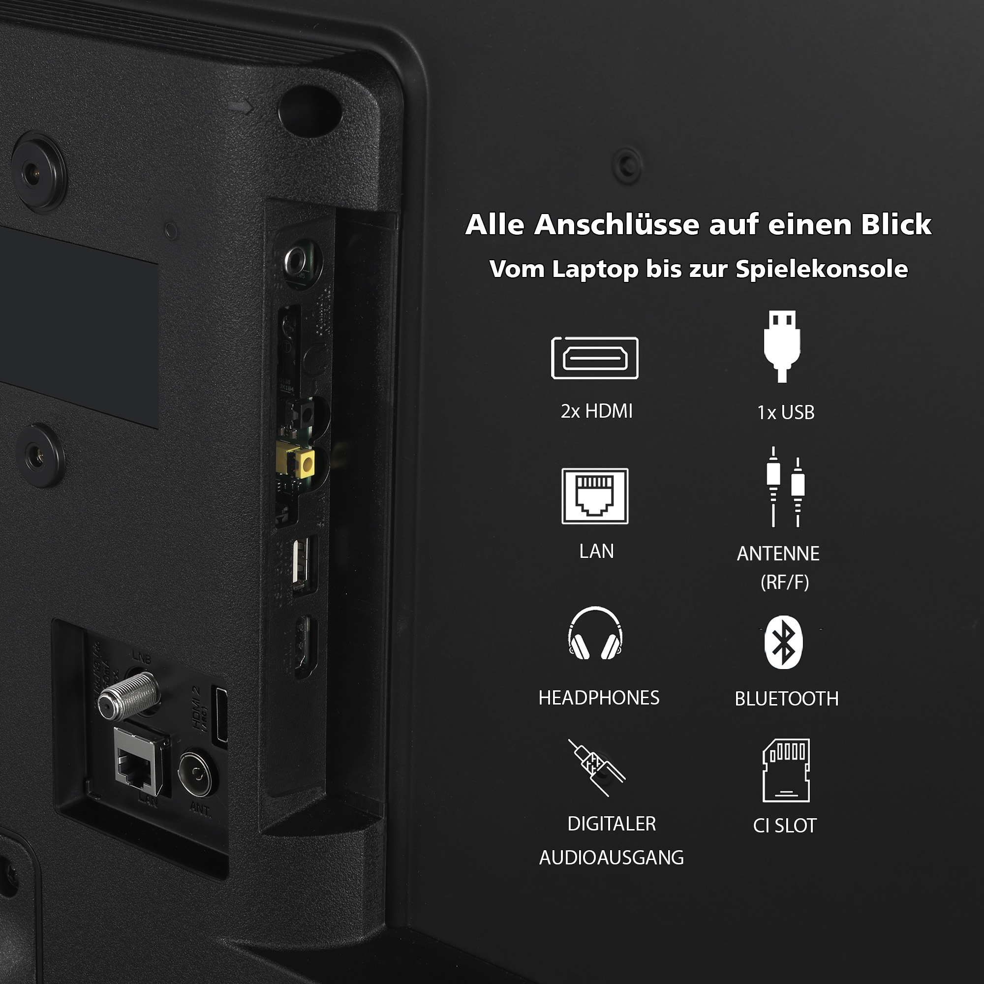 Anschlüsse: 2x HDMI (CEC + ARC), 1x USB, CI+