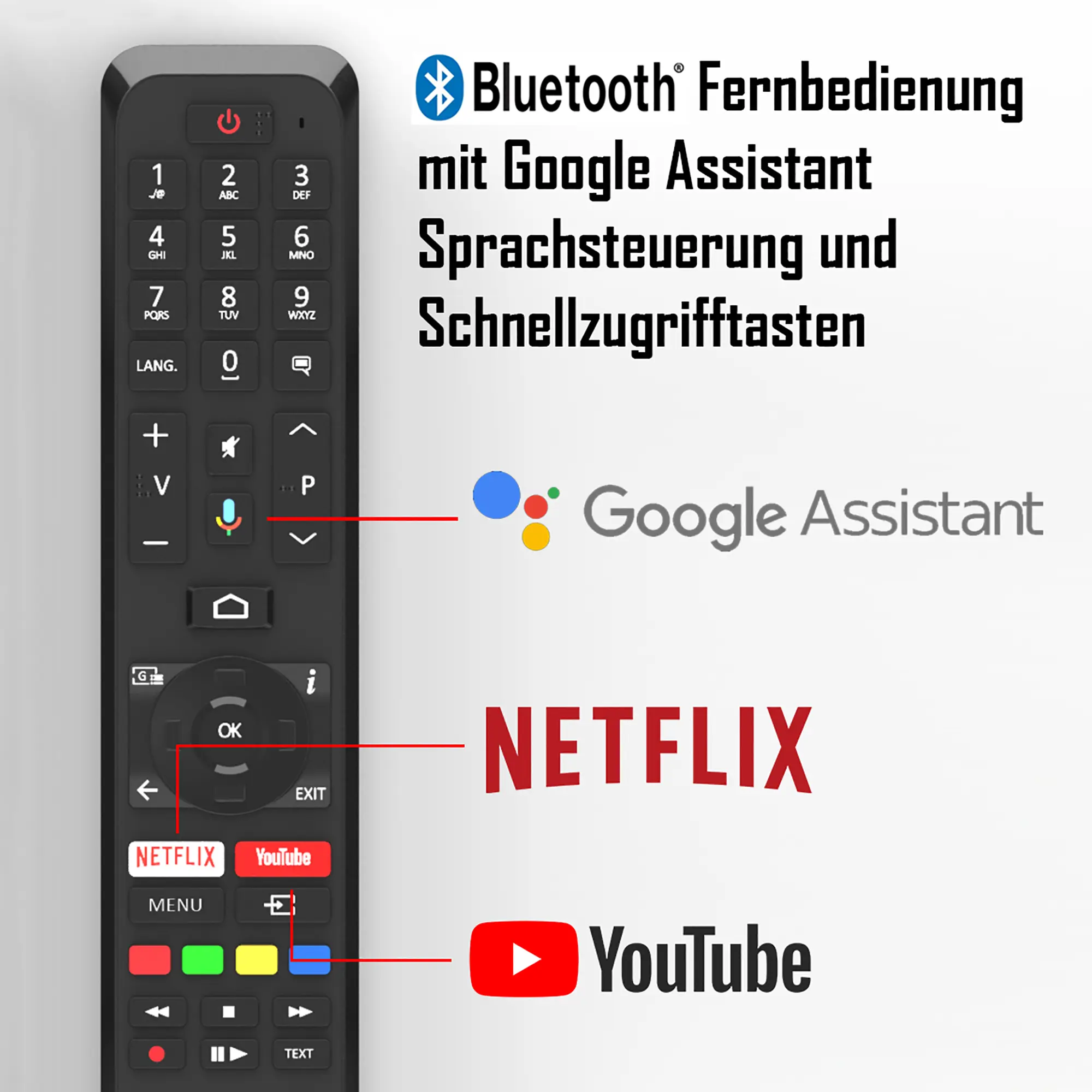 - Betriebssystem & Smart Features: Android TV mit Google Play Store & Google Assistant