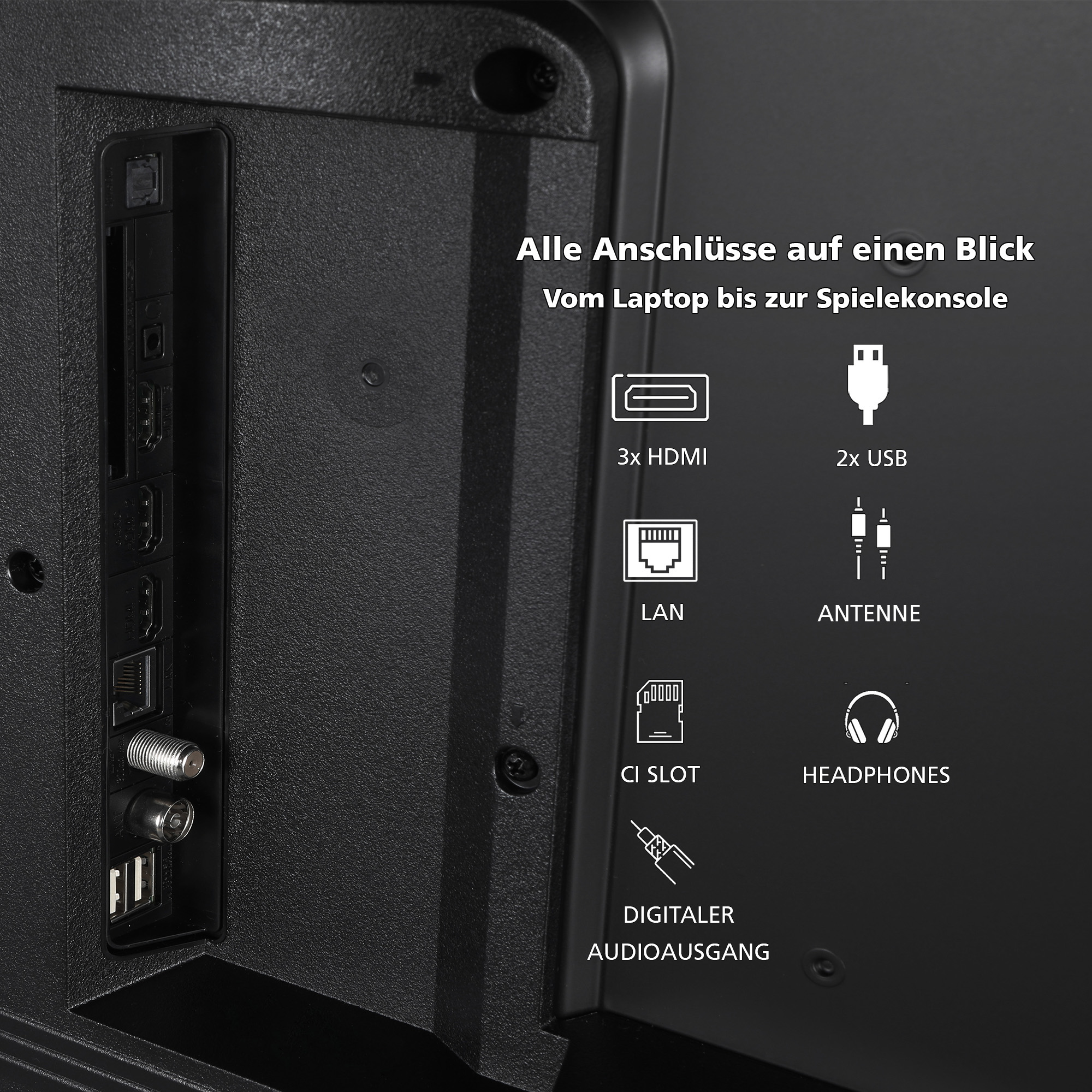 Anschlüsse: 3x HDMI (CEC + ARC), 2x USB, CI+, WLAN