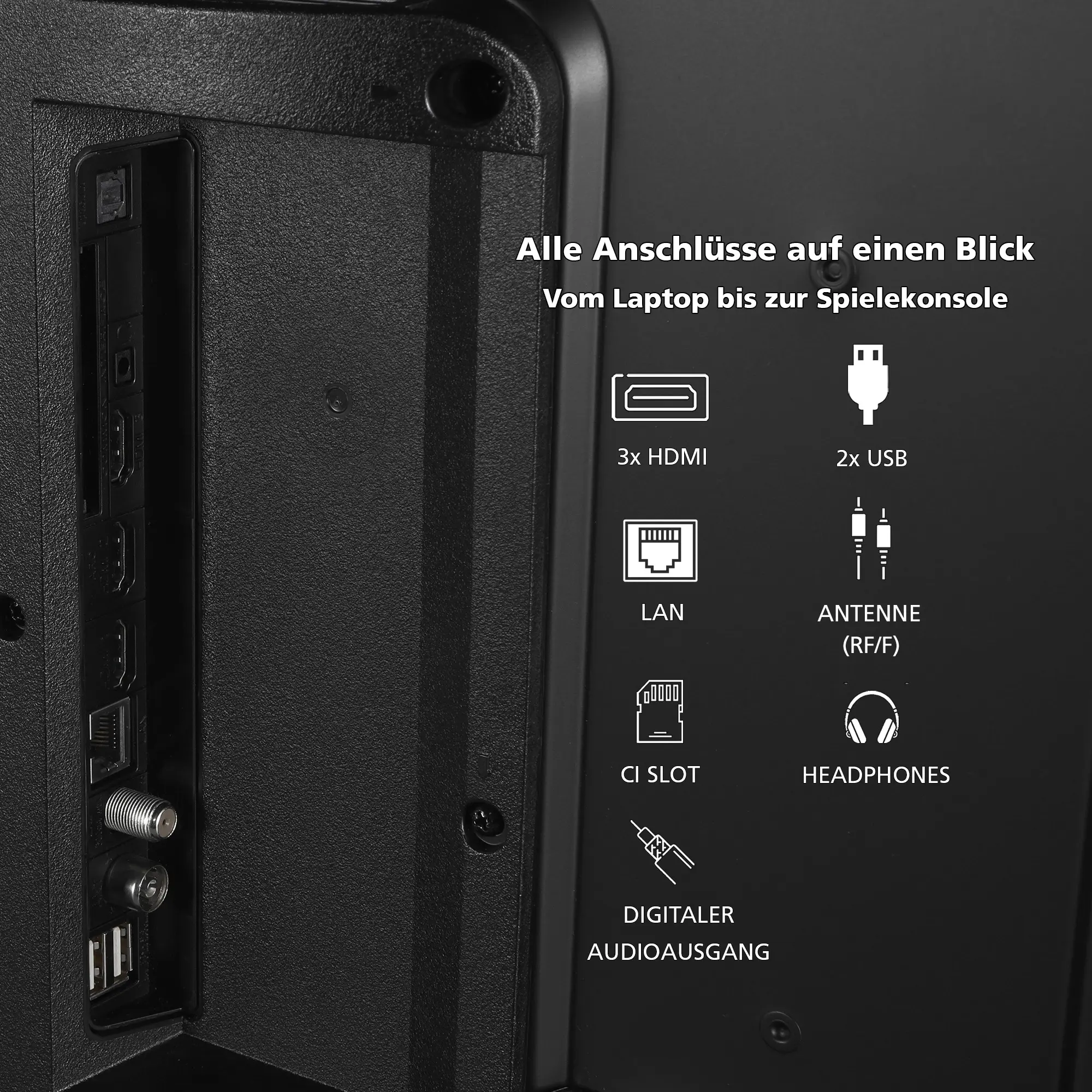 3x HDMI (CEC + ARC), 2x USB mit Media-Player, CI+ sowie WLAN bieten dir maximale Anschlussmöglichkeiten für alle Geräte.